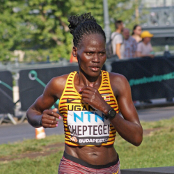 Rebecca Cheptegei was a Ugandan cross country, long-distance and marathon runner, who was the national record holder in the latter discipline and a former world champion in mountain running.Cheptegei represented Uganda at several World Championships since 2010, including IAAF World Cross Country Championships, World Mountain and Trail Running Championships and World Athletics Championships. She also competed in the women's marathon at the 2024 Summer Olympics in Paris. She was killed in September 2024 by her former partner, Dickson Ndiema Marangach, who doused her with petrol and set her alight, reportedly over a land dispute in Kenya.